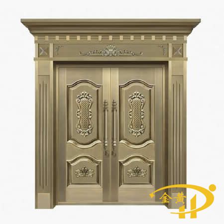 本款高端別墅門,型號是M-9021,門面采用精工拼接工藝,原材料為洛陽純紫銅或黃銅制作而成。 注意:羅馬柱、門頭高度、墻體厚和門柱寬度可根據客戶實際要求量身定制。